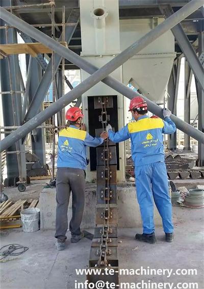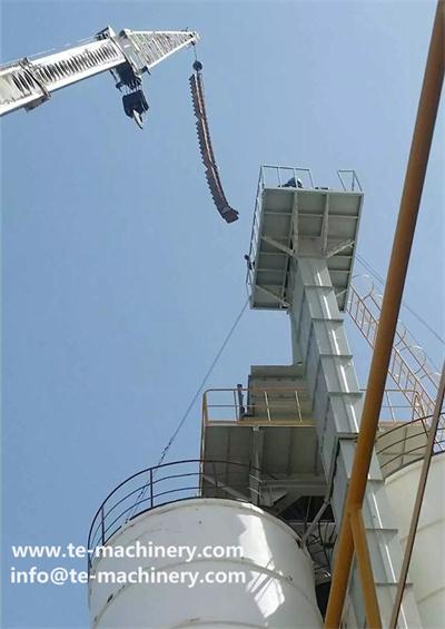 Two bucket elevators of TCNE30-30mtr,TCNE50-27mtr have arrived at the customer’s plant, it’s a dry-mixed mortar factory in Iran, these two bucket elevators are used to lift dry sand. The traction for these two bucket elevator are plate chain. The lifting height are 30 meters and 27 meters. The worker are doing the installation on pictures, looking forward to another order from this sincere customer.