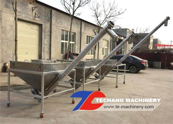 Three sets screw feeders in Stainless steel 304 are ready for delivery, they are used in salt industry. Will work with Linear vibrating screen. Conveying the materials to mixing machine by first screw feeder, and then conveying the mixed materials to a linear vibrating screen by the second screw feeder for filtering. After filtering the final goods is conveyed to the packing machine by the third screw feeder.
