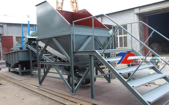 The customer's demand is that the worker pours legume into the hopper through ladders, and then the materials are conveyed through the belt conveyor to the linear vibrating screen to achieve the purpose of screening.